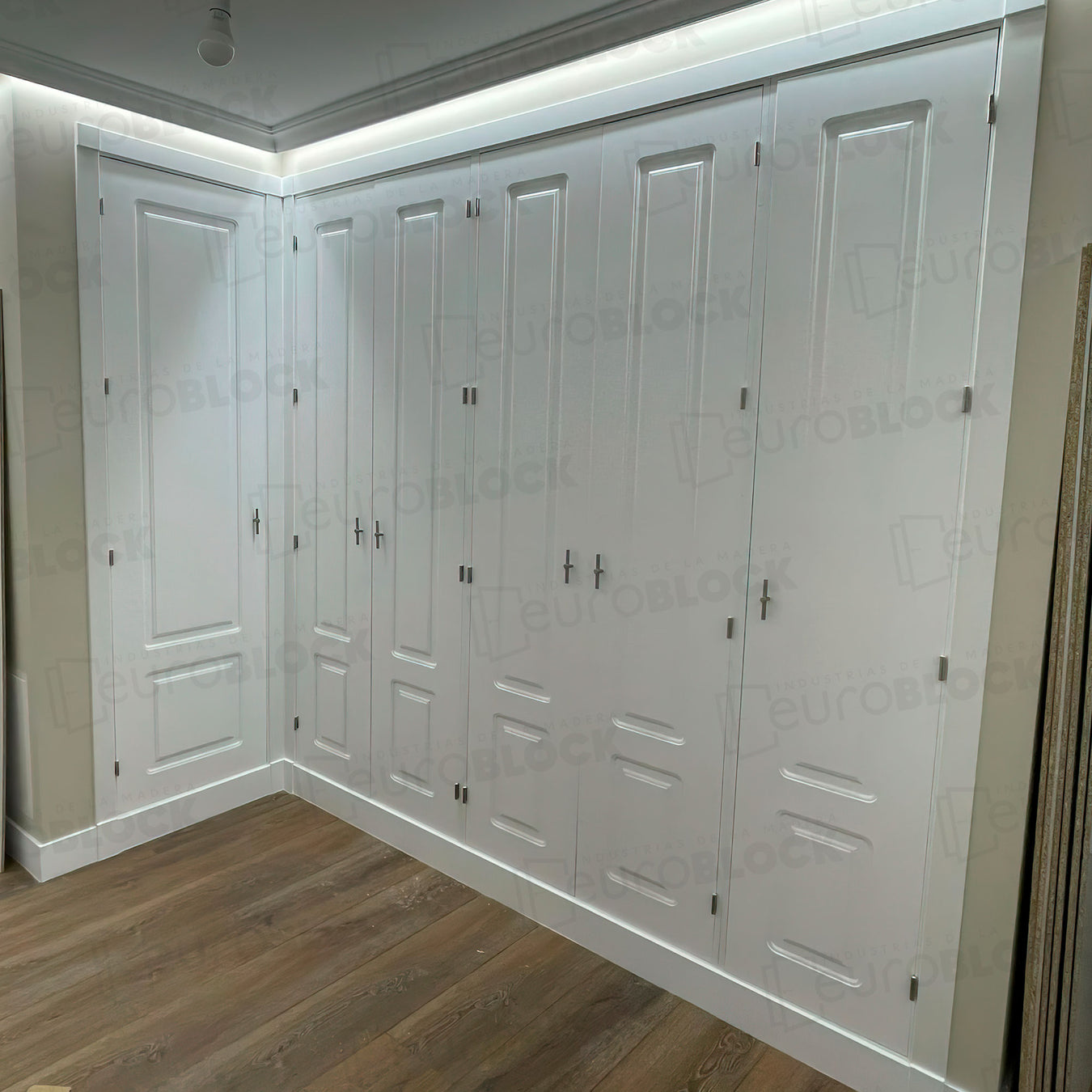 Sí, disponemos de una amplia gama de diseños y acabados para que puedas adaptar las puertas de armario al estilo decorativo de tu hogar. Desde modelos lisos modernos hasta opciones con molduras más clásicas o rústicas, y acabados como barniz transparente, lacado blanco, madera teñida o en crudo (para personalizar a tu gusto). Esto te permite conseguir una integración total con el mobiliario existente, ya sea en dormitorios, vestidores o recibidores. También puedes combinar puertas iguales en distintos espacios para mantener una línea estética coherente en toda la vivienda.